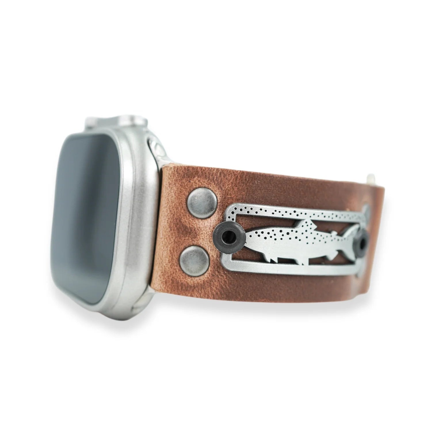Add some SLP style to your Apple watch with our badged watch bands. Our Dry Fly badge is mounted on our soft Horween leather band and attached to Apple watch band connectors.