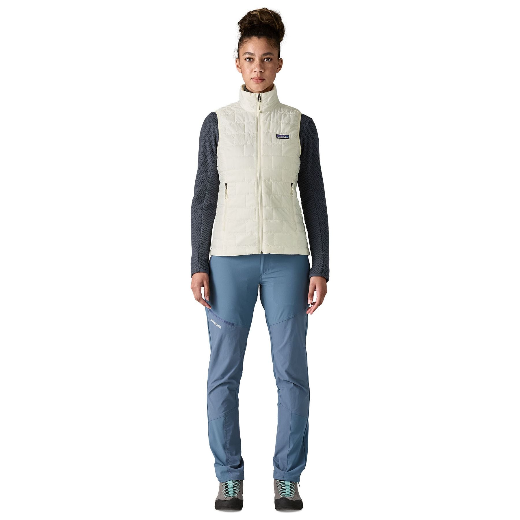 We built the Nano Puff® Vest for climbers who needed a weather-resistant, lightweight and packable synthetic insulation layer that could stay warm even when wet and withstand seasons of use. Ever since, those same features have made it the uncontested favorite midlayer for just about any outdoor pursuit. With fit refinements for improved mobility, 60-g PrimaLoft® Gold Insulation Eco 100% postconsumer recycled polyester with P.U.R.E.™ (Produced Using Reduced Emissions) technology, and a 100% recycled polyester shell and lining. Made in a Fair Trade Certified™ factory.