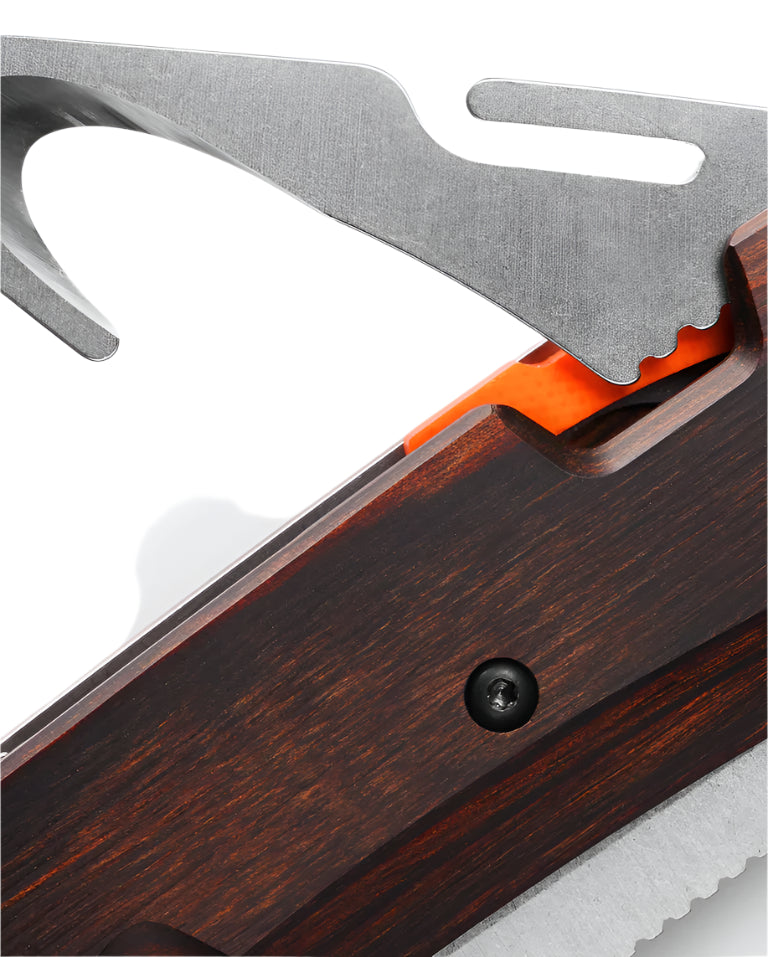 Better than ever. The 15062 Grizzly Creek is the next phase of the ultimate field multitasker, featuring subtle refinements such as a non-recurved CPM-S30V blade for ease of sharpening and new orange accents for increased visibility in the field. Maintaining the signature folding gut hook, fantastic ergonomics, and classic style of its predecessor, the Grizzly Creek remains the total package for the hunter who wants it all in one pocket-friendly folder.